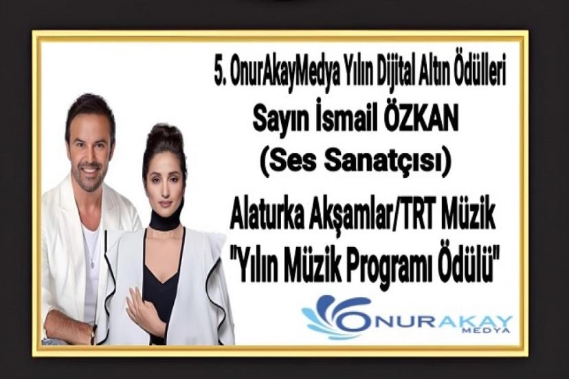 5. OnurAkayMedya Yılın Dijital Altın Ödülleri’nde değerli sanatçılar, şairler, bestekârlar, oyuncular, gazeteciler, yazarlar ve büyük hocalardan oluşan jüri, Türk sanat müziğinin ünlü sanatçıları İsmail Özkan ve Mine Geçili’nin sunduğu ve TRT Müzik ekranlarında yayınlanan “Alaturka Akşamlar” isimli programı, “Yılın Müzik Programı Ödülü’ne layık gördü. Programın sunucuları Özkan ve Geçili ise Altın Mikrofon ile ödüllendirildi.