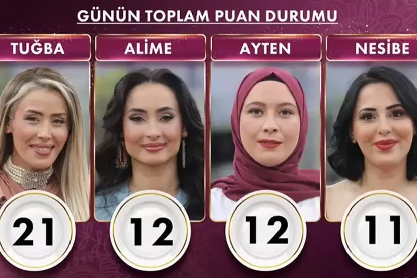 23 Şubat 2026 tarihli bölümde açıklanan puan durumu şu şekilde: Tuğba 21 puan, Alime 12 puan, Ayten 12 puan, Nesibe 11 puan...